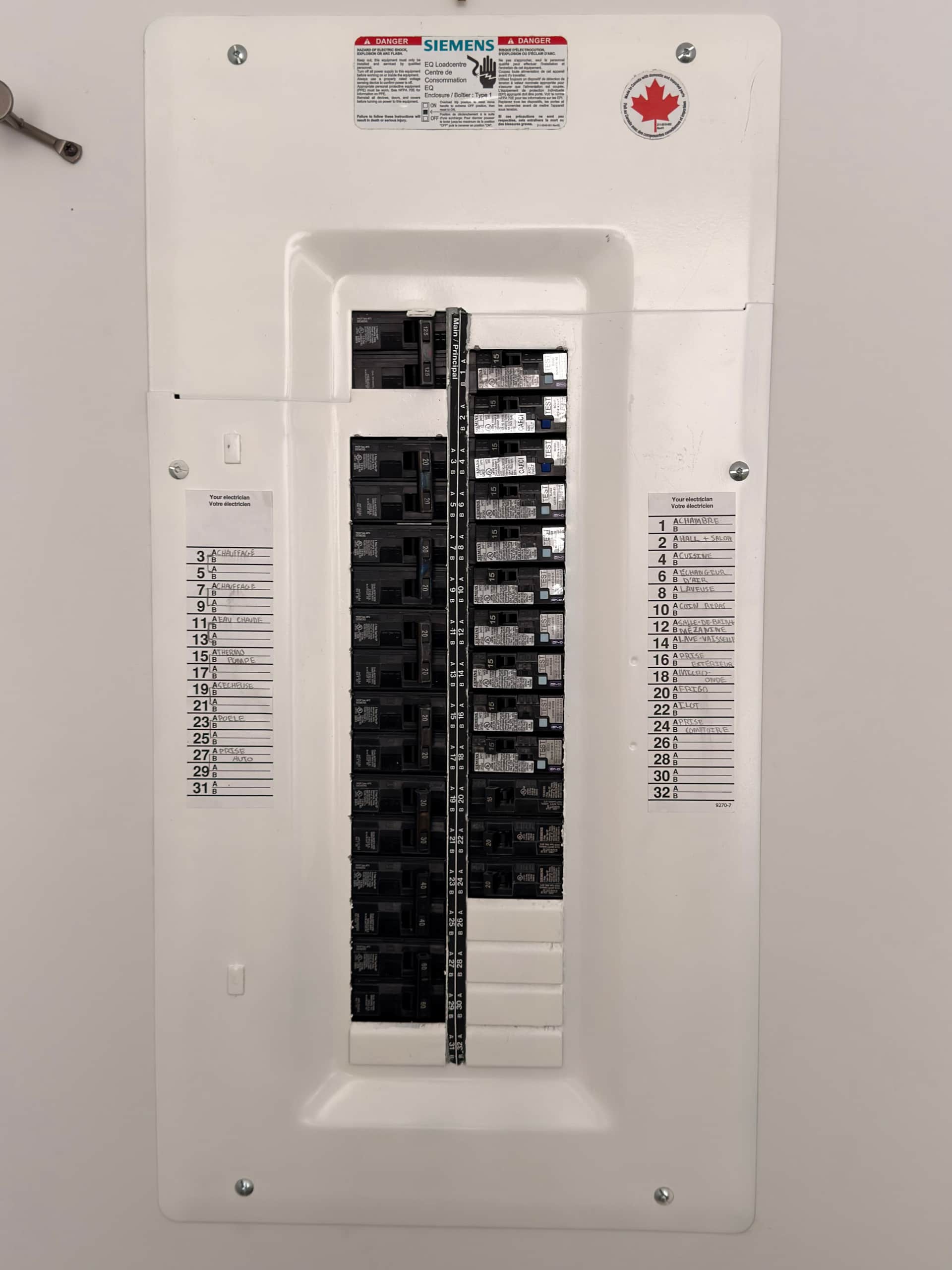 Celui-ci est dans la chambre derrière le cadre près de la porte de la chambre, repérez le disjoncteur correspondant à la pièce (voir étiquette).